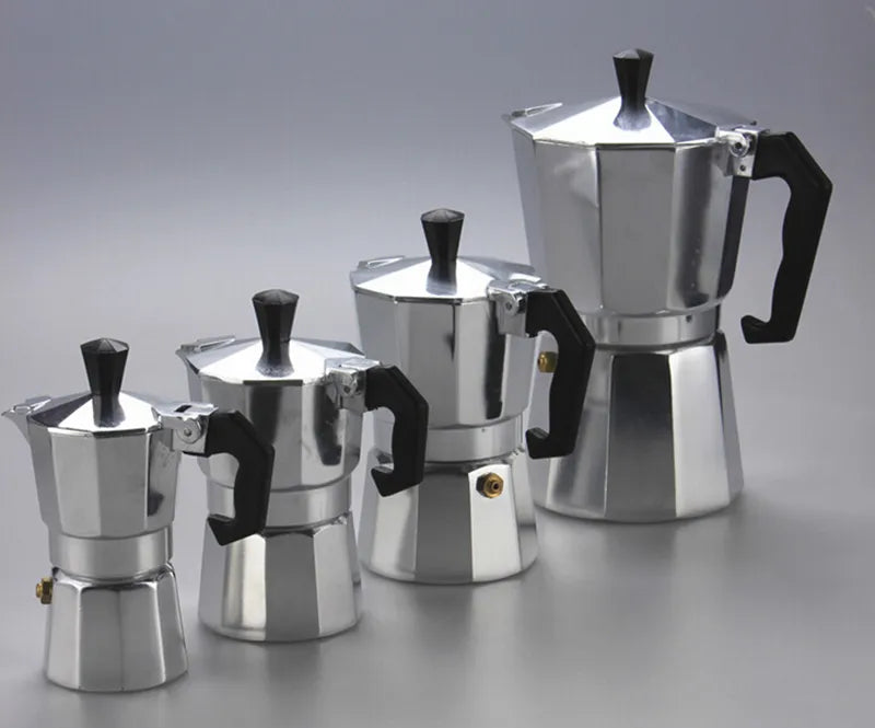 This Aluminum Coffee Pot comes in 6 different sizes. It is Ideal for stove top percolating coffee or espresso. It is also small enough and light weight enough to take hiking, backpacking or camping.